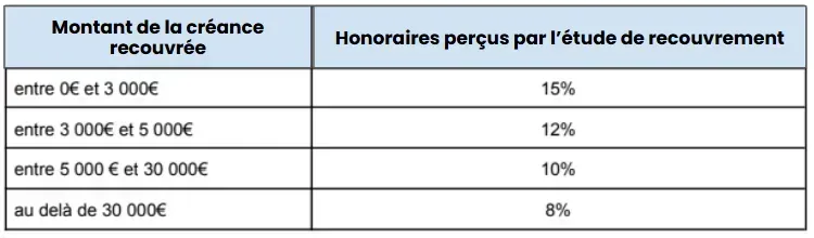alors le taux d’honoraire de recouvrement qui s’appliquera sera de 12HT% (et pas 15%)