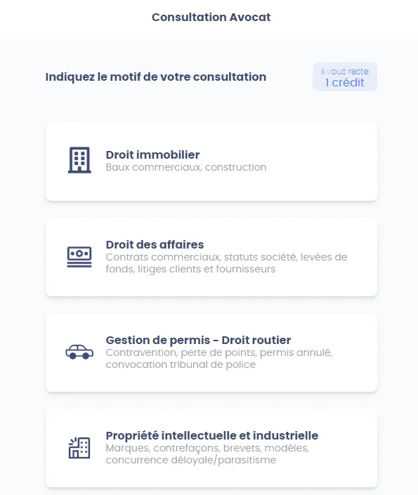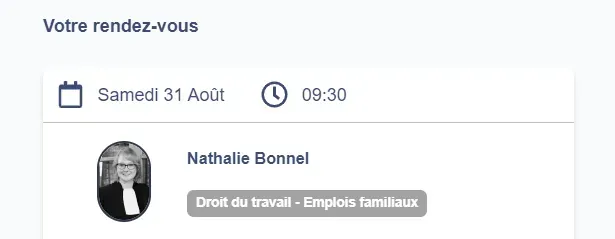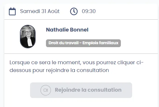 ⚠️ Si vous ne vous présentez pas à l’heure du rendez-vous, l’avocat partenaire devra attendre 15 minutes, puis se déconnectera.