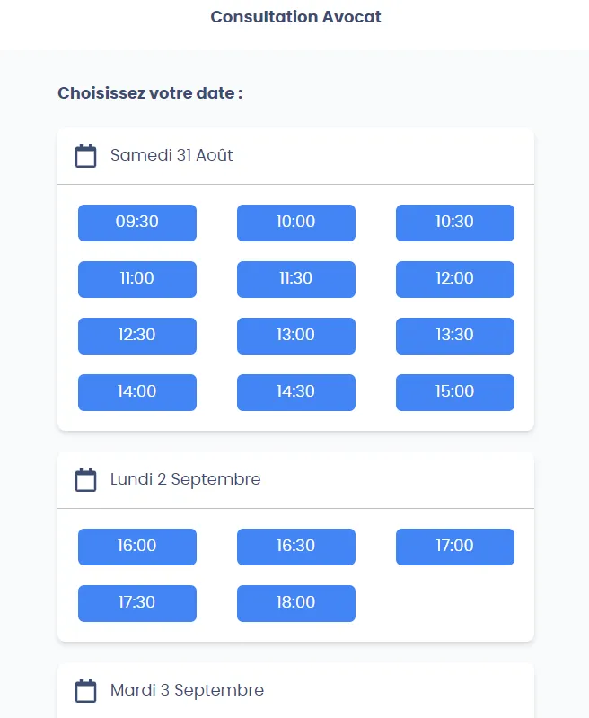 3. Choisissez la date et l’heure de votre rendez-vous parmi les créneaux disponibles