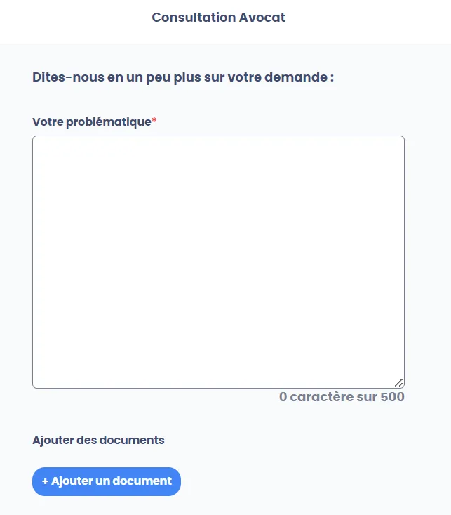 4. Précisez à l’avocat le motif de votre consultation, et éventuellement téléchargez des documents.
