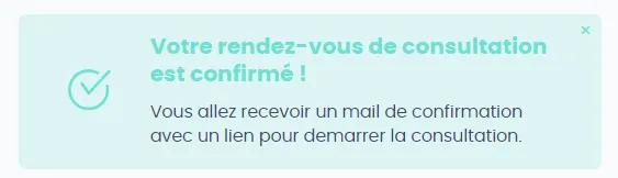 6. Votre rendez-vous est confirmé ! Vous recevrez un e-mail de rappel 24h avant et 30 min avant la consultation.